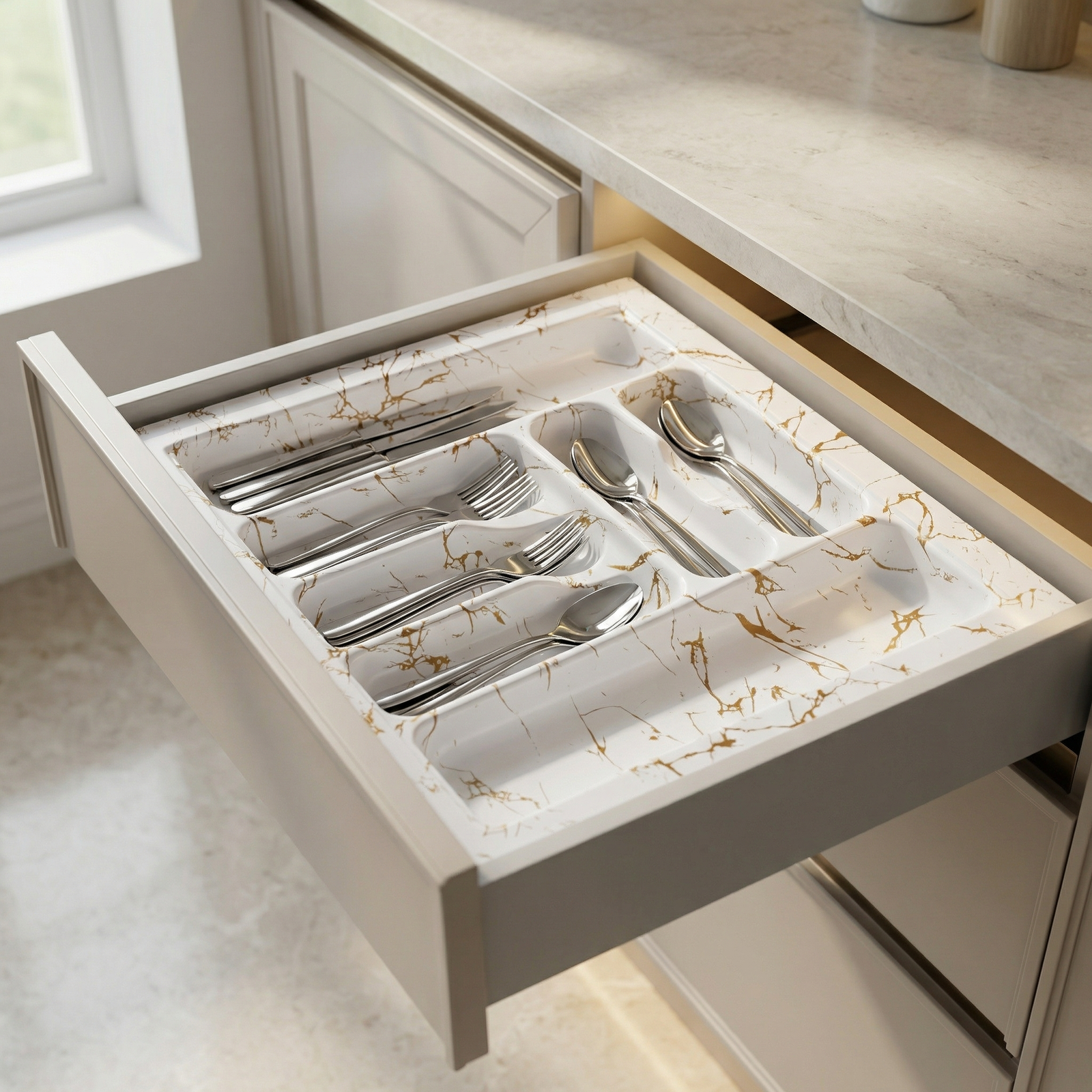 Multi-compartment layout for efficient cutlery organization