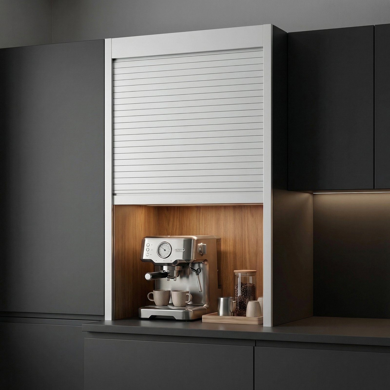 • Elegant vertical rolling shutter system for modular kitchens